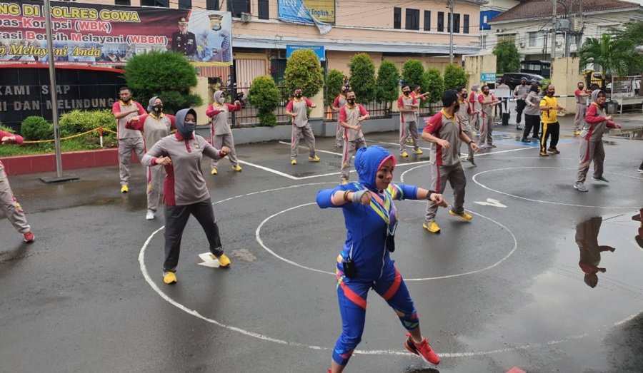 Kegiatan olahraga senam bersama dipimpin oleh Kabag Sumda Polres Gowa Kompol Erra Suryanigtyastuti dan diikuti personel Polres Gowa dengan mendatangkan instruktur senam, kegiatan Jumat Sehat berlangsung dengan penuh semangat dihalaman Mapolres Gowa, Jumat (08/04).