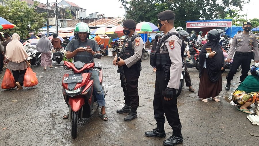 Dalam kegiatan operasi yustisi kali ini sebanyak 15 orang masyarakat uang melintas dan pengunjung pasar mendapat teguran dari personil Polres Gowa karena tidak menggunakan masker saat berada di luar rumah.