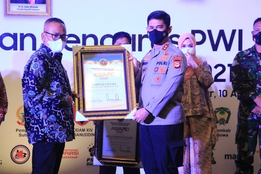 Pemberian penghargaan tersebut diberikan saat menghadiri acara pelantikan pengurus PWI Sulawesi selatan untuk masa Bakti 2021 - 2026 bersama Kabid Humas Polda Sulsel Kombes Pol. E.Zulpan, Sabtu (10/04/2021).