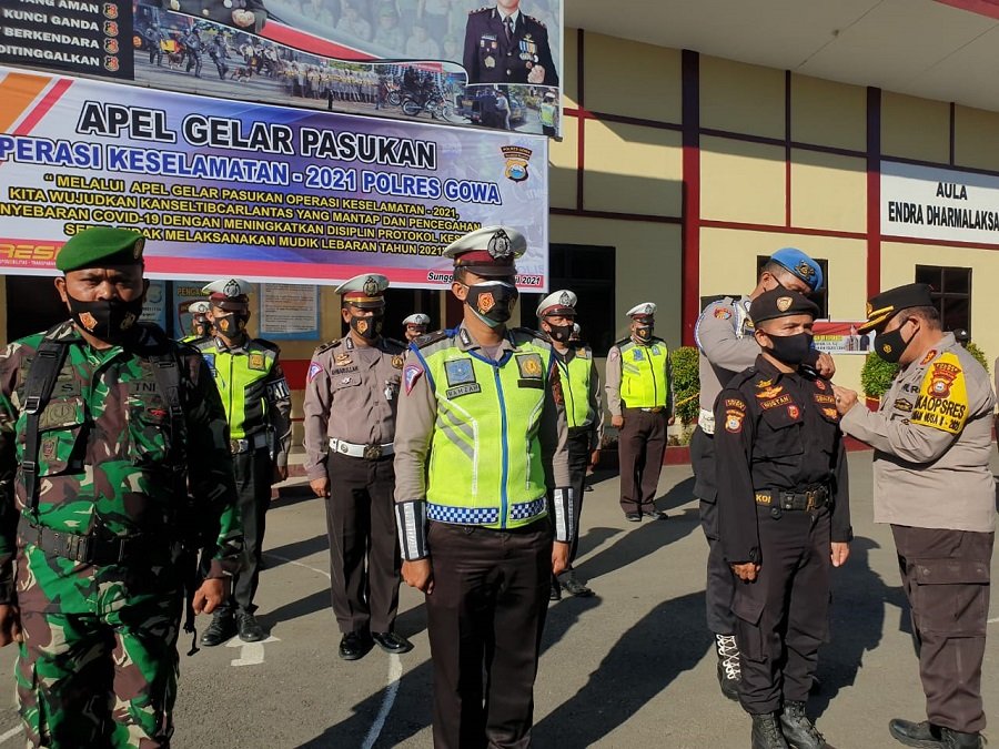 Jajaran kepolisian Polres Gowa melaksanakan apel gelar pasukan dalam rangka operasi kepolisian kewilayahan dengan sandi "Keselamatan 2021" memasuki bulan suci Ramadhan di lapangan Apel Polres Gowa.