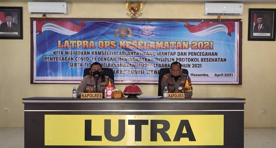 Polres Luwu Utara (Lutra) Sulawesi Selatan (Sulsel) menggelar Latihan Pra Operasi (Lat Pra Ops) Keselamatan 2021, Senin 12 April 2021 di Aula Serbaguna Mapolres Lutra.