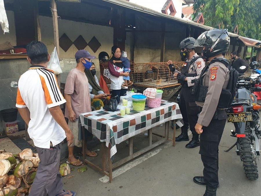 Seperti yang dilakukan oleh personel Unit 01 Turjawali Satuan Sabhara Polres Gowa menyasar pedagang takjil menjelang buka puasa di Bulan Suci Ramadhan, Jumat (23/4/21).