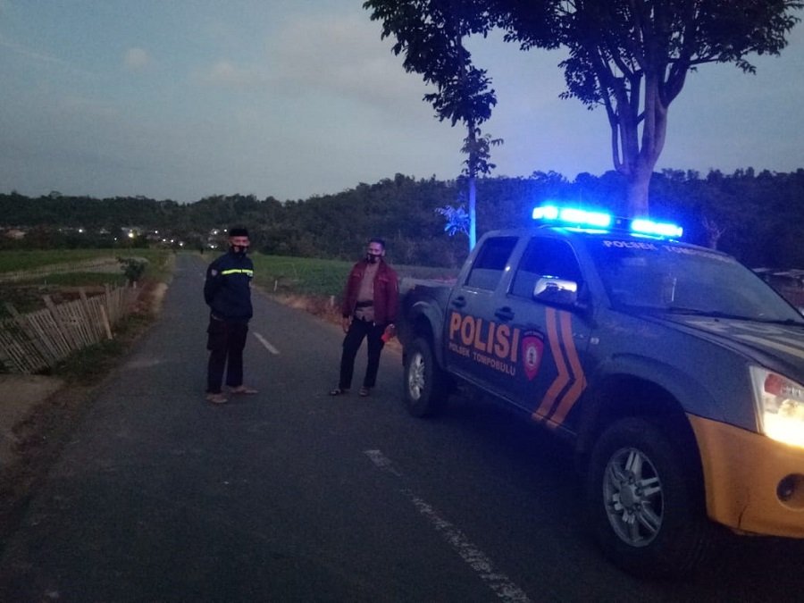 Kapolsek Tompobulu AKP Hendra Mangera,SH bersama personilnya melakukan patroli untuk memantau wilayah yang sering dijadikan ajang balap liar, Rabu pagi (28/04/21).