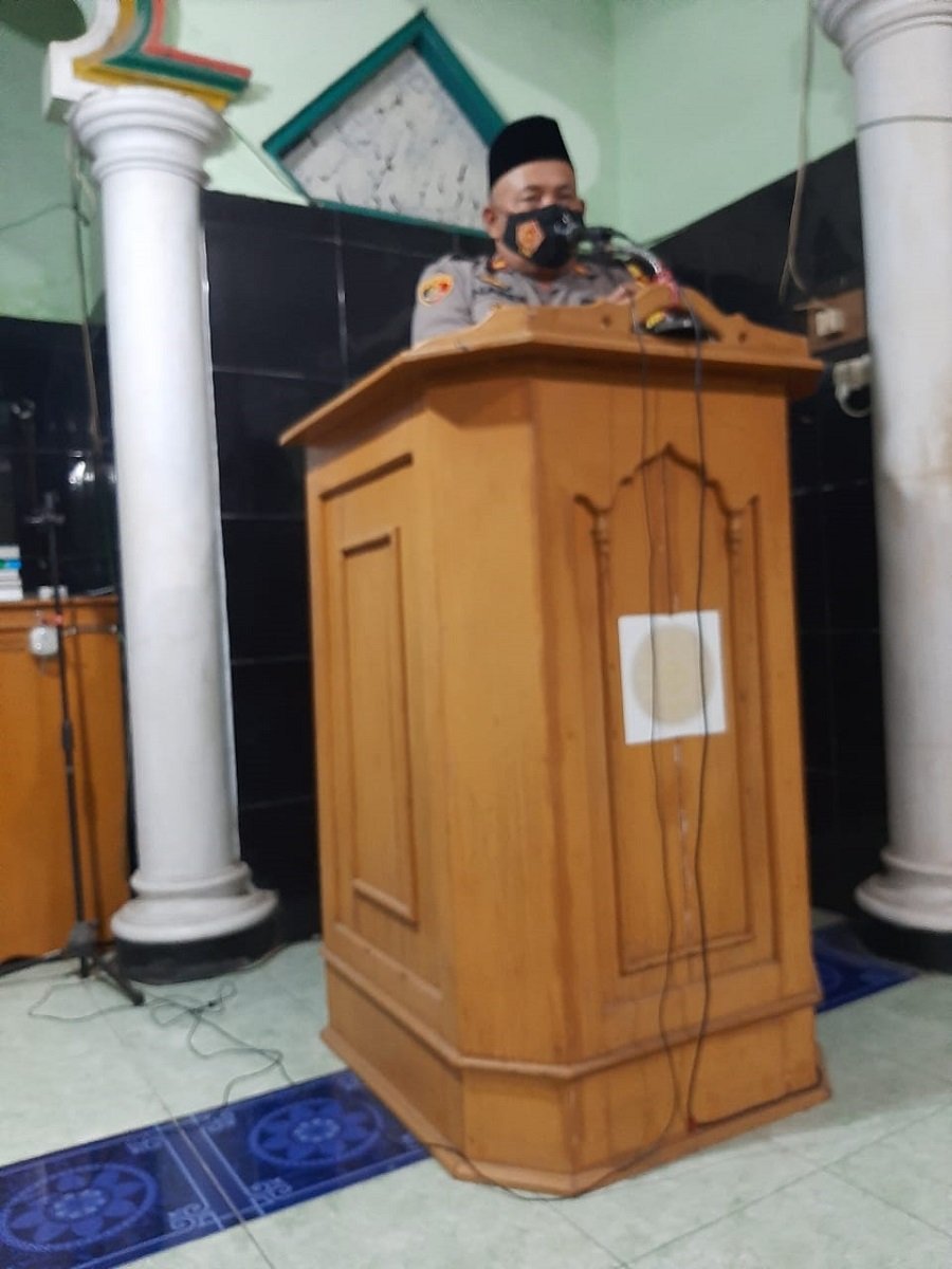 Setelah pelaksanaan shalat Tarawih, Kapolsek berdiri di depan Jemaah, menyampaikan himbauan Kamtibmas kepada jamaah yang hadir.