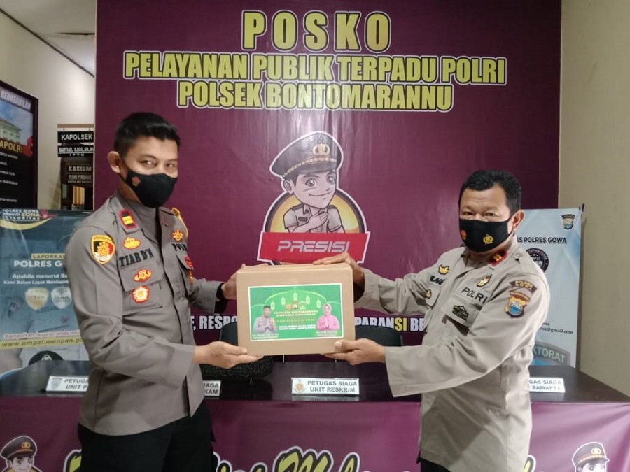 Sebanyak 70 Bingkisan paket lebaran diserahkan secara simbolis kepada personil Polsek Bontomarannu dan personil Polsubsektor Pattalassang di ruang pelayanan terpadu Polsek Bontomarannu.