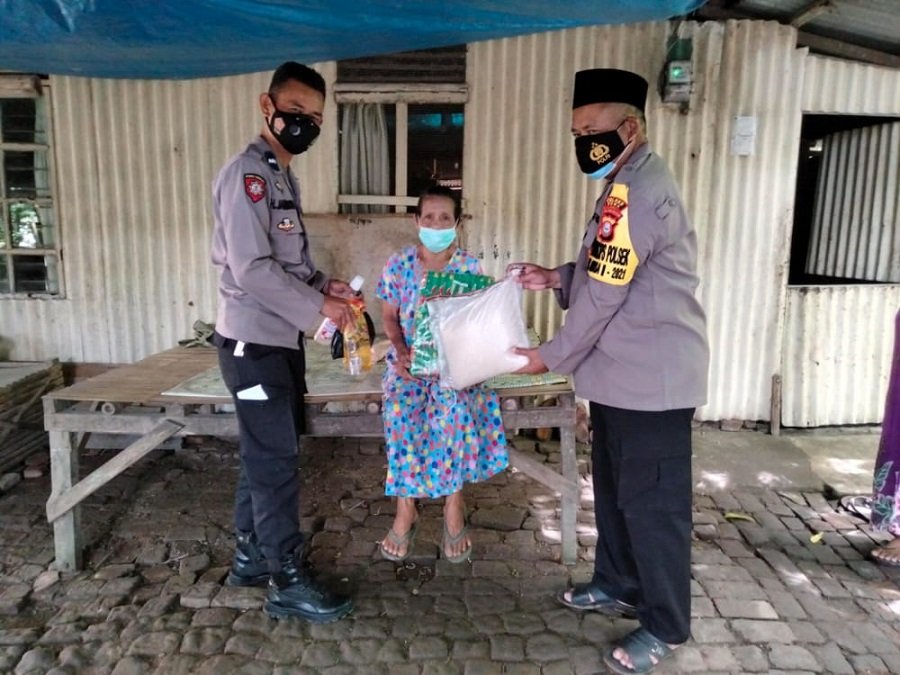 Di Bulan Suci Ramadhan, Personil Polsek Bajeng Polres Gowa gelar bakti sosial berupa membagikan sembako kepada masyarakat kurang mampu, Sabtu (8/5/2021).