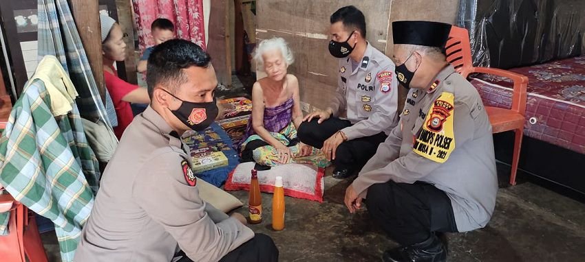 Jelang Hari Raya Idul Fitri 1442 H, Kapolsek Bajeng Polres Gowa Iptu Sunardi, SH, MH bersama Personil Polsek Bajeng kembali melakukan Kegiatan sosial dengan membagikan paket sembako kepada warga Prasejahtera, Senin (10/5/2021) siang.