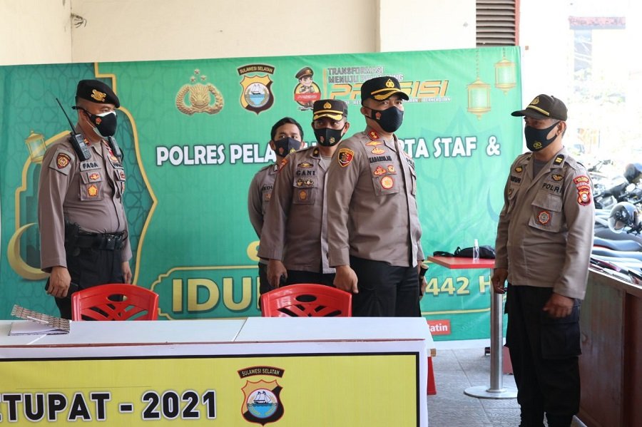 Kapolres Pelabuhan Makassar AKBP Muhammad Kadarislam Kasim mengecek kesiapan pos pengamanan Operasi Ketupat yang berada di wilayah hukumnya, Rabu (12/05/2021).