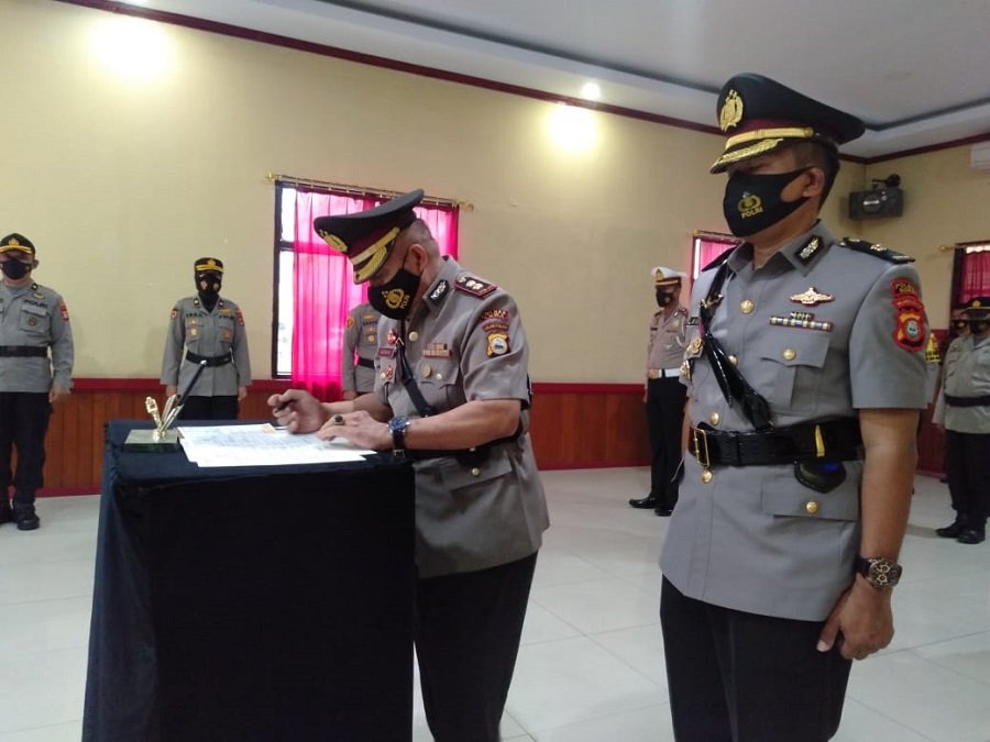 Kapolres Gowa AKBP Budi Susanto memimpin pelaksanaan serah terima jabatan Wakapolres Gowa di Aula Endra dharmalaksana pada Sabtu (15/5/2021) pukul 08.00 WITA