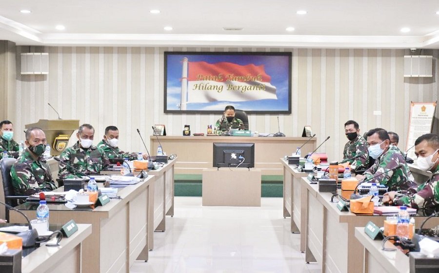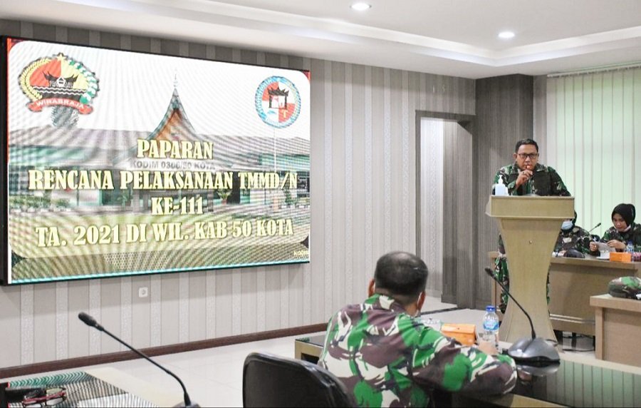 Pangdam I/BB, Mayjen TNI Hassanudin, SIP, MM menerima paparan kesiapan Dansatgas TMMD ke-111 TA 2021 yang digelar di ruang Bina Yudha Lt II Makodam I/BB, Senin (24/05/2021).