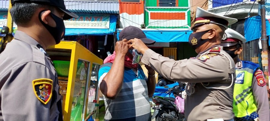 Seperti yang dilakukan personel Polres Pelabuhan Makassar yang terlibat Operasi Aman Nusa dengan rutin turun ke lapangan untuk melakukan antisipasi penyebaran virus Covid-19 dengan membagikan masker kepada masyarakat.