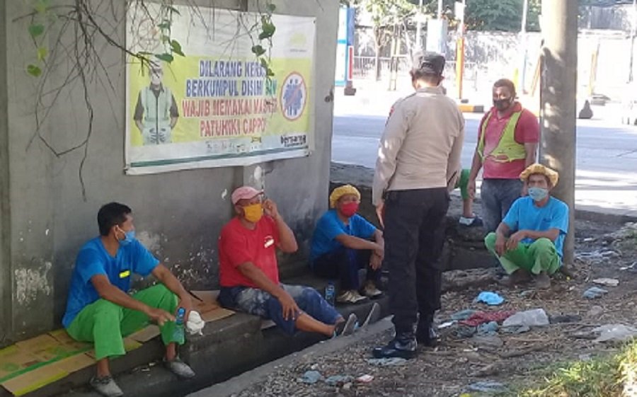 Dalam rangka pencegahan penyebaran virus Covid-19 di wilayah Kota Makassar, Unit Binmas Polsek Soeta Polres Pelabuhan Makassar memberikan imbauan kepada masyarakat yang bekerja sebagai buruh pelabuhan serta buruh pabrik, agar jaga jarak (Physical Distancing) apabila melakukan aktivitas di luar rumah.