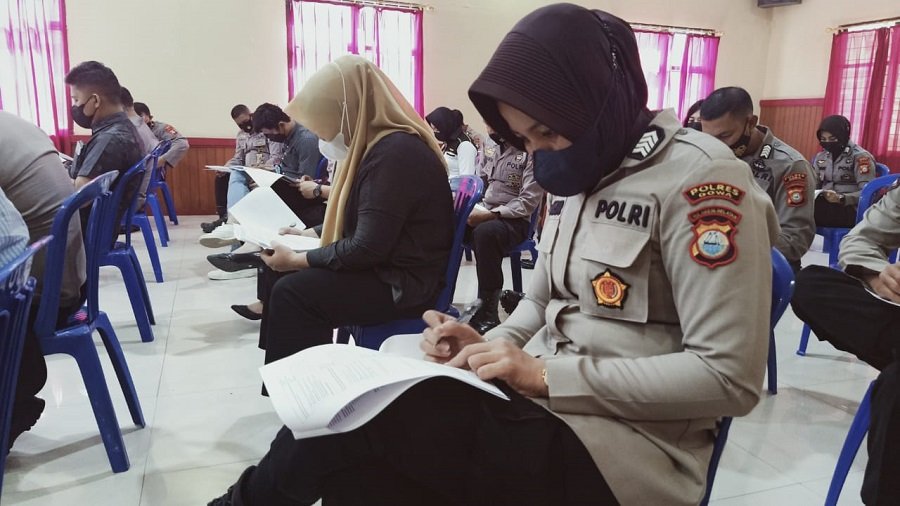 Kapolres Gowa AKBP Budi Susanto didampingi Wakapolres Gowa KOMPOL Soma Miharja membuka kegiatan pengisian Indeks Tata Kelola ( ITK) online Polres Gowa Kamis, (3/6/2021) pukul 09.00 WITA