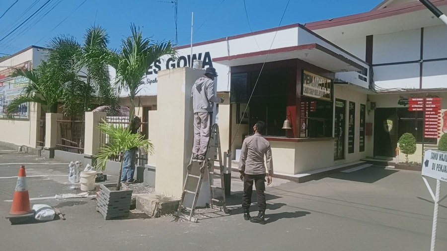 Dalam rangka memperingati Hut Bhayangkara ke 75, personil Polres Gowa mulai berbenah memperindah tampilan kantor, Senin (7/6/21).