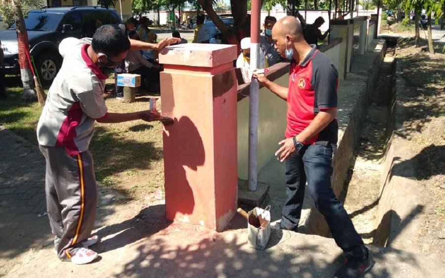 Terlihat personil gotong royong, bahu membahu melakukan pembersihan dilingkungan Polsek baik dalam ruangan maupun diluar ruangan, termasuk mengecat dinding Kantor Polsek dan tembok pagar serta membersihkan selokan dari sampah, rumput dihalaman .