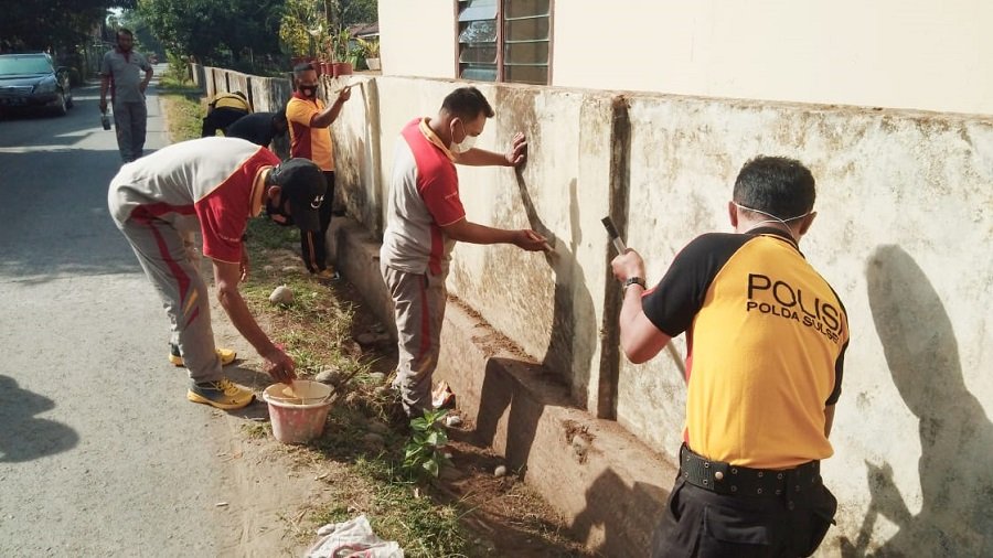 Dalam rangka Menyambut Hut Bhayangkara ke 75, Anggota Polsek Bajeng Polres Gowa Mulai berbenah memperindah tampilan kantor dengan menjauhkan halaman kantor dari sampah.