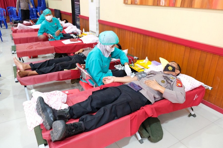 Memperingati hari Bhayangkara ke-75 yang jatuh pada 1 Juli 2021 jajaran kepolisian Resor Gowa menggelar bakti kesehatan donor darah di aula Endra Dharmalaksana Polres Gowa, Rabu (16/6/21) pukul 08.00 WITA.