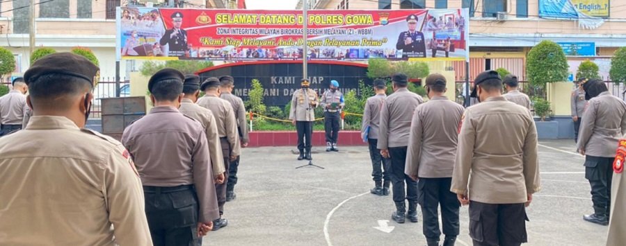 Turut hadir pada kesempatan tersebut segenap pejabat utama Polres Gowa, para perwira dan seluruh personil