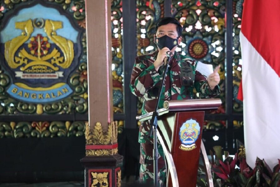 "Pandemi Covid-19 telah berlangsung lebih dari satu tahun dan menjadi semakin kompleks. Saya ucapkan terima kasih atas dedikasi yang tinggi, kerja keras, kesungguhan, dan upaya yang telah dilaksanakan oleh saudara-saudara semua," tegas Panglima TNI Marsekal TNI Hadi Tjahjanto, SIP. saat memimpin Apel Gabungan Penanganan COVID-19 di Kabupaten Bangkalan Jawa Timur, Sabtu (12/06/2021) lalu.