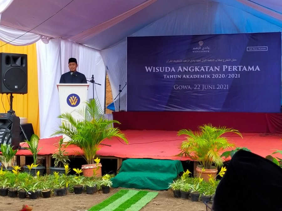 Saat memberi sambutan Bapak Bupati Gowa memberikan apresiasi kepada Bapak Mujawwid M.Arif, Lc, M.Si selaku Kepala Pesantren Wadizzuhur yang telah memberikan kontribusi dengan mendirikan pesantren Hafiz Qur'an diwilayah Kabupaten Gowa, hadirnya pesantren ini memberikan peluang besar kepada masyarakat Kabupaten Gowa untuk mencetak hafiz Qur'an, hal ini juga seiring dengan program pemerintah Kabupaten Gowa yang mencanangkan satu Desa satu Hafiz dan satu kelurahan satu Hafiz Qur'an.