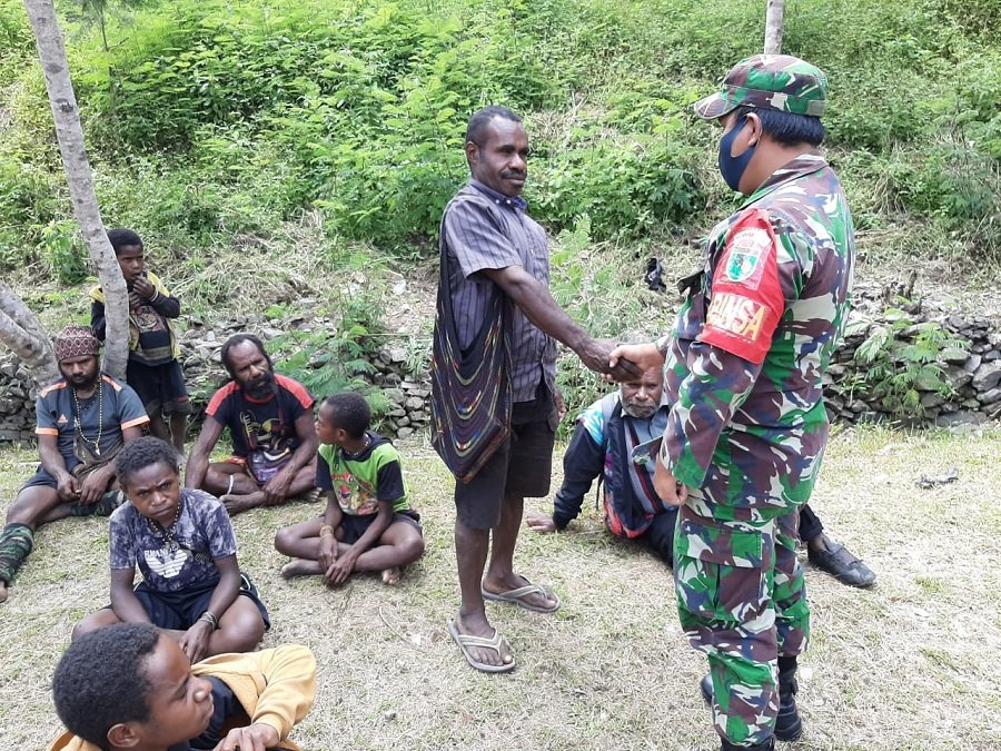 Wujudkan kerukunan di masyarakat, Serda Wiyono Babinsa Posramil 1714-06 Tinginambut Kabupaten Puncak Jaya bersilahturahmi ke tokoh masyarakat Tinginambut, Bapak Arengkek Kiwo.