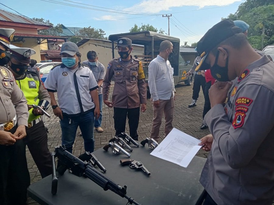 Kapolsek Somba Opu Kompol Abdul Rasjak S.Sos, MH, yang di dampingi Kanit Provos Ipda Yonathan dan anggotanya melakukan pemeriksaan secara teliti satu persatu bagi pengguna Senpi bersama Surat Ijin Pemegangnya.