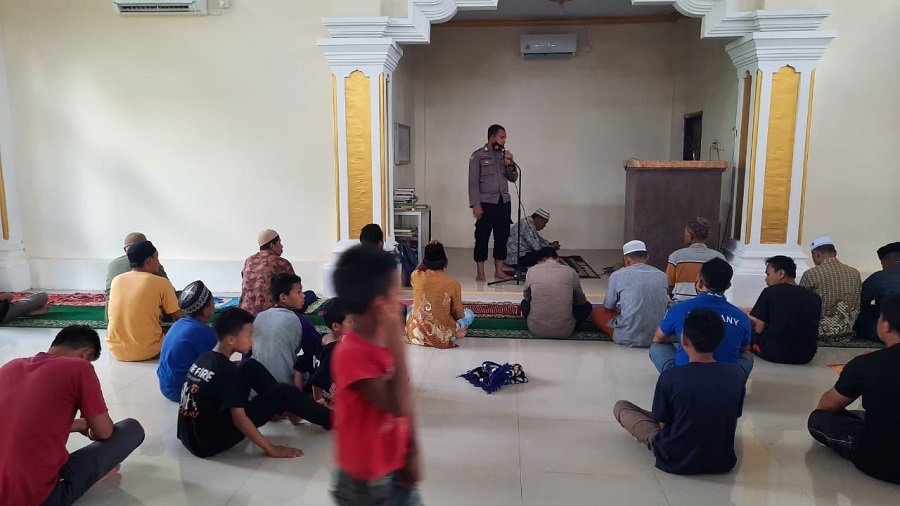 Bhabinkamtibmas juga mengajak jamaah untuk tetap mematuhi protokol kesehatan dengan menggunakan masker, menjaga jarak, mencuci tangan dan menghindari kerumunan untuk mencegah penyebaran covid 19," ajaknya.