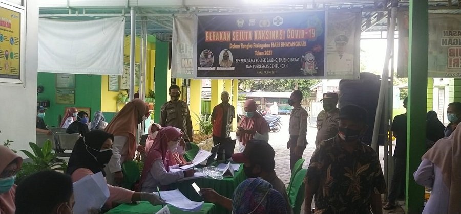 Dalam rangka menyambut Hut Bhayangkara ke 75, Polsek Bajeng Polres Gowa bersama Puskesmas Gentungang melaksanakan Vaksinasi dengan tema "Gerakan Sejuta Vaksinasi Covid19, terhadap warga untuk mencegah penyebaran Covid19, bertempat di Puskesmas Gentungang Kec. Bajeng Barat Kab. Gowa, Rabu (23/6/2021) pagi.