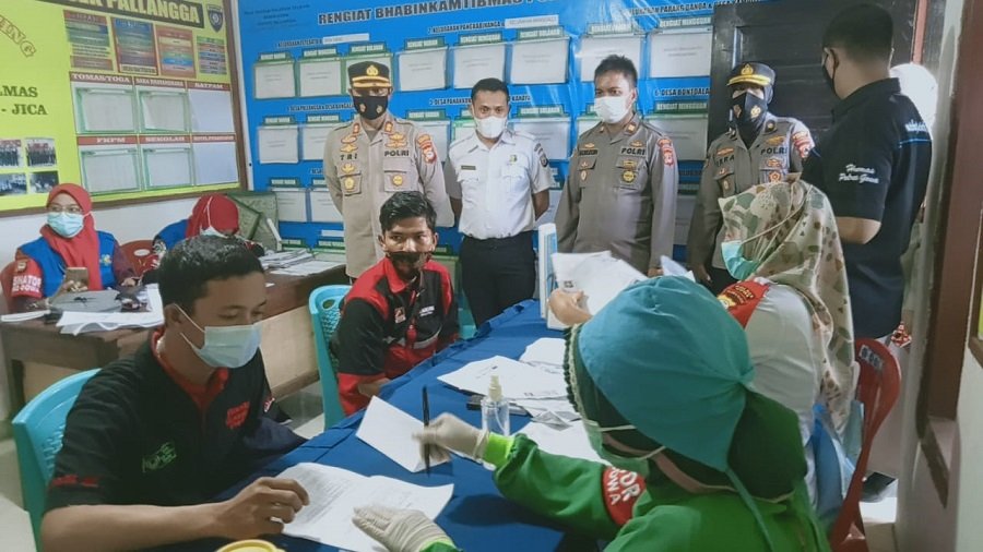 Pada kesempatan tersebut, Kapolres bersama Kabag Sumda dan Kapolsek Pallangga menyaksikan pengecekan dan pemberian Vaksin Covid-19 kepada masyarakat.