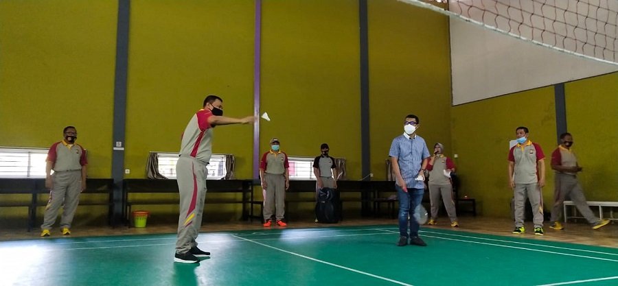 Kapolres Gowa membuka turnamen bulutangkis antar satuan kerja di jajaran Polres Gowa memmperingati hari Bhayangkara ke 75, Minggu (27/6/2021).