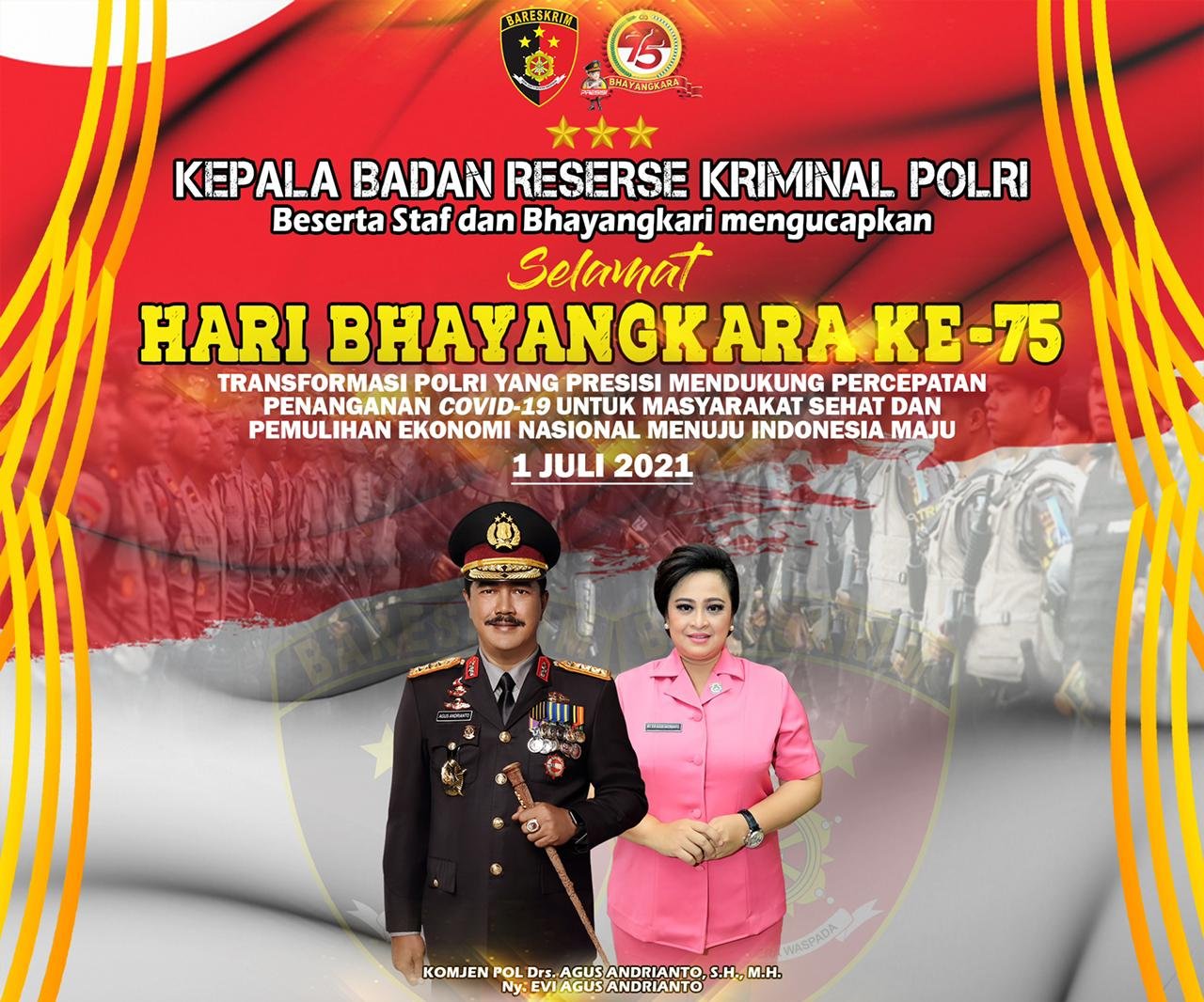 Jenderal Bintang 3 kelahiran Blora, 16 Februari 1967 ini menyebut Hari Bhayangkara ke-75 harus menjadi momentum bagi seluruh anggota Polri untuk terus berbenah guna memberikan perlindungan, pengayoman dan pelayanan terbaik kepada masyarakat.