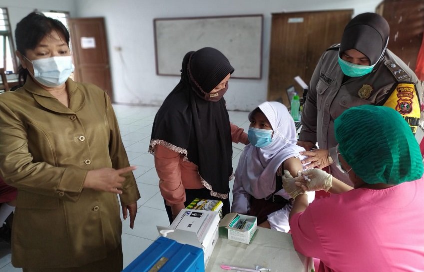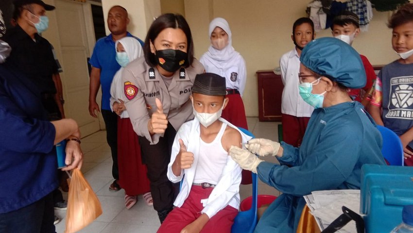 "Dalam kegiatan vaksinasi di sekolah-sekolah, kami selalu libatkan Polwan-polwan kami untuk melakukan pendampingan terhadap anak-anak sekolah yang akan di vaksin," ujar Kompol Heri.