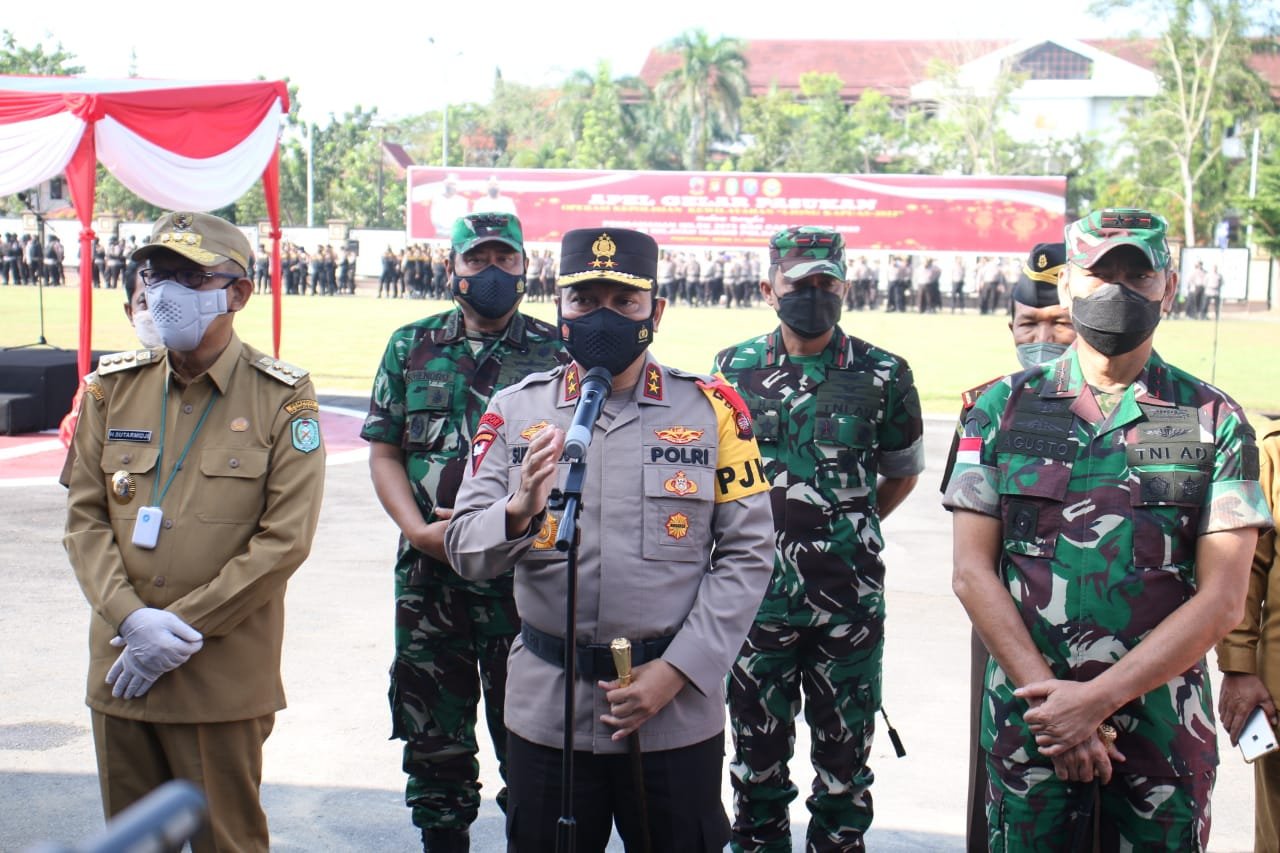 Kapolda Kalbar, Irjen Pol Suryanbodo Asmoro saat memberikan keterangan menyampaikan, kegiatan apel gelar pasukan kali ini adalah untuk mengetahui kesiapan personel dan materiil yang akan digunakan dalam pengamanan selain itu juga untuk menyamakan persepsi unsur lintas sektoral.