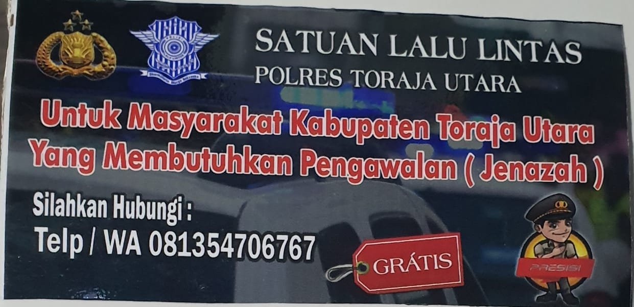 "Jika ada masyarakat yang butuhkan pelayanan Pengawalan Jenazah, baik itu ke Pemakaman ataupun menuju kerumah duka, maka dapat menghubungi Sat Lantas Polres Toraja Utara atau dapat menghubungi nomor telpon pelayanan yang sudah disediakan, katanya.