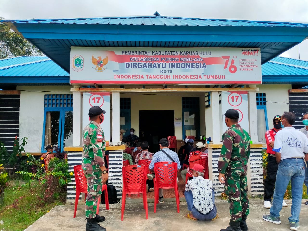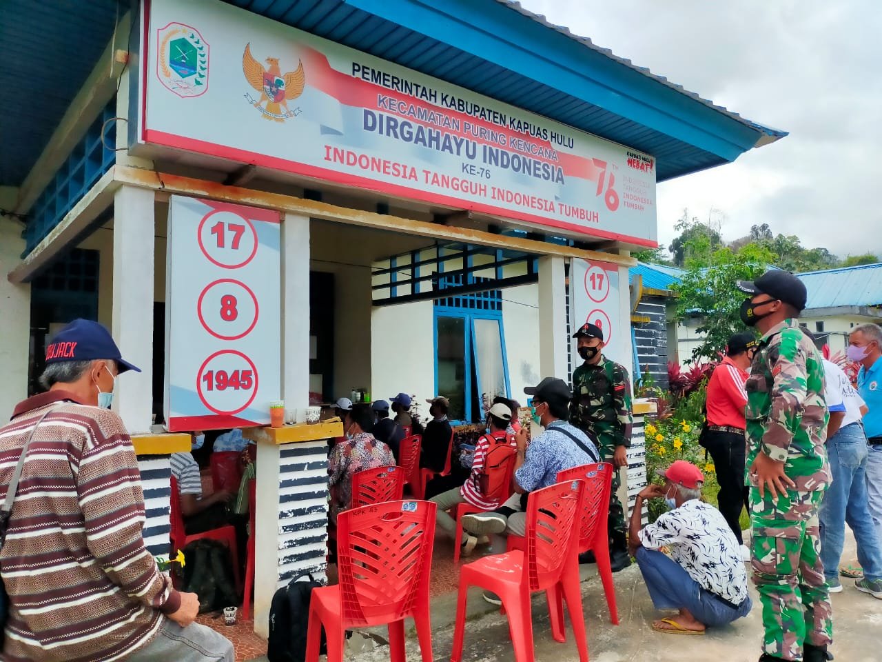 Anggota Satgas Pamtas RI-Malaysia Yonif 144/JY berikan rasa aman pergantian Tumenggung bersama warga di Desa Sei Mawang, Kecamatan Puring Kencana Kabupaten Kapuas Hulu, Provinsi Kalimantan Barat.