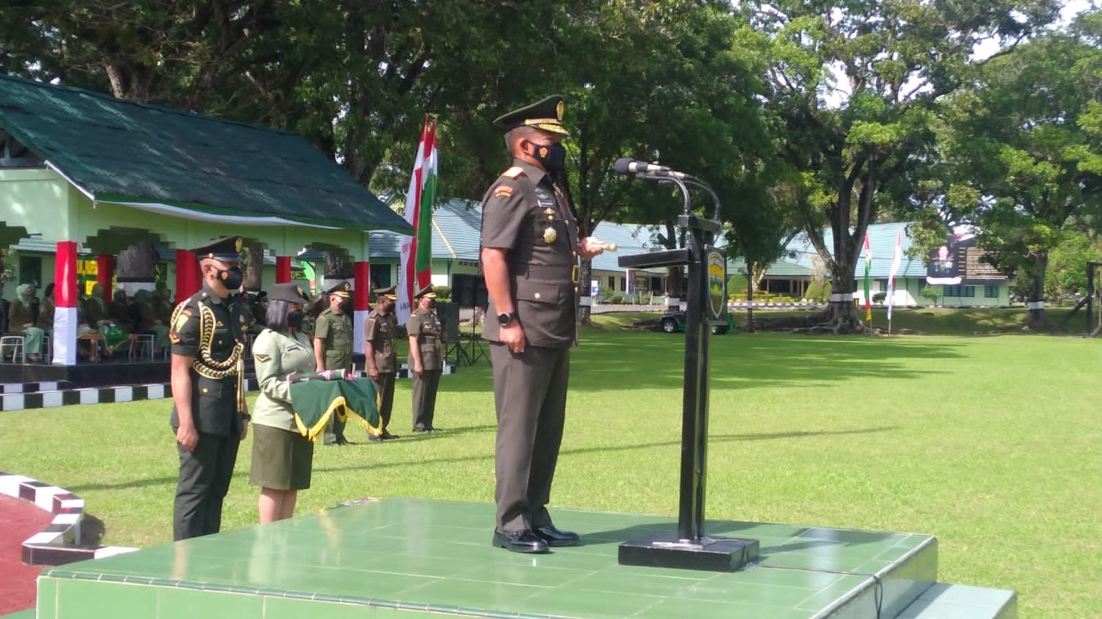 Pangdam I Bukit Barisan (BB) Mayjen TNI Hassanudin, SIP, MM memimpin upacara penutupan Pendidikan Pertama Bintara (Dikmaba) TNI AD TA 2021 di Lapangan Jend. Sudirman Rindam I/BB Pematang Siantar, Jumat (11/02/2022).