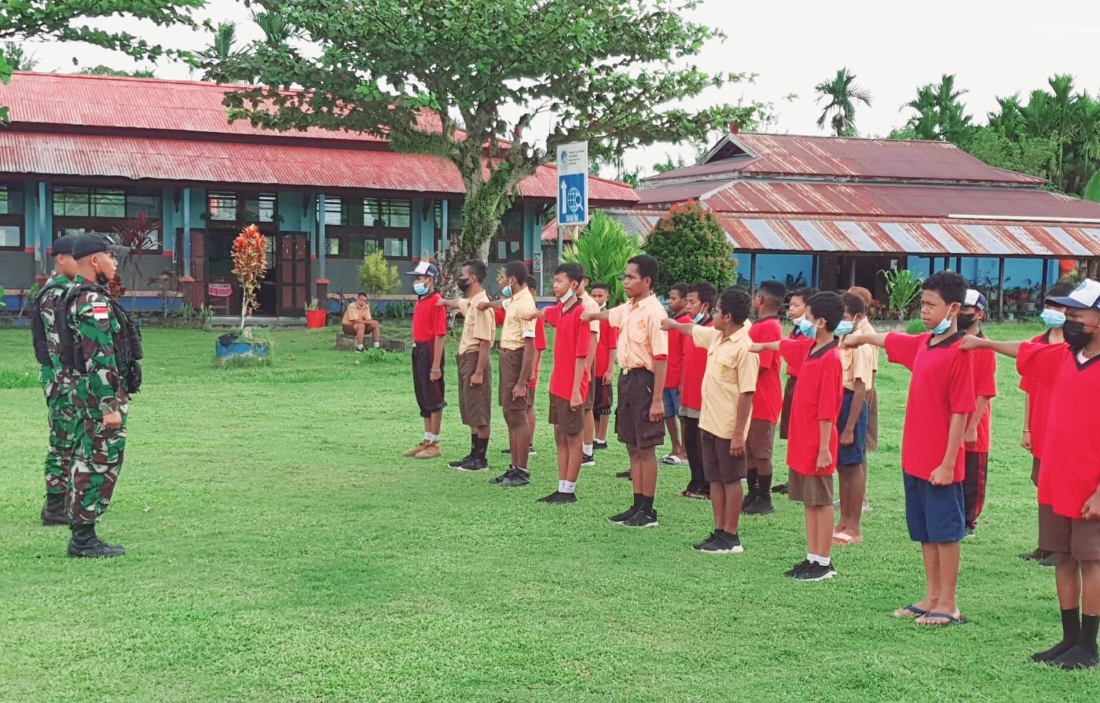 Letda Inf Stenli Andaria selaku Pasiter Satgas Pamtas RI-PNG Yonif 711/Rks mengatakan, selain melaksanakan tugas pokok menjaga perbatasan RI-PNG anggota Satgas kami membantu pihak sekolah dalam mencerdaskan anak-anak bangsa sebagai tenaga pendidik, membentuk nasionalisme dan disiplin tinggi di sekolah SMP Negeri 5 Arso Timur.