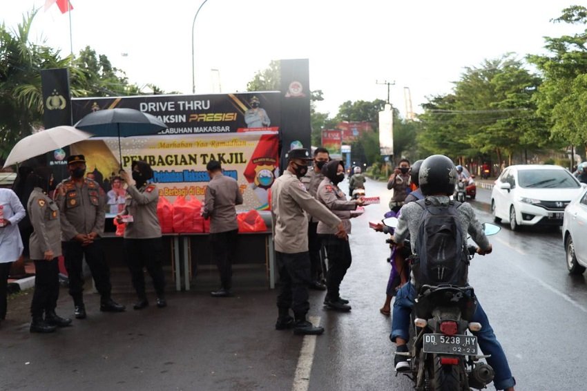 Sebagai wujud kepedulian dan salah satu cara untuk bersilaturahmi dengan warga di bulan penuh berkah Ramadan, Polres Pelabuhan Makassar bagikan takjil didepan Mapolres Pelabuhan Makassar.