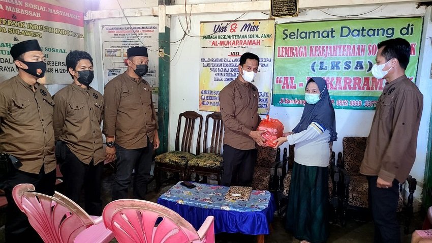 Satuan Intelkam Polres Pelabuhan Makassar memberikan sembako kepada Panti Asuhan Al-Mukarramah yang terletak di jalan Barukang V Kelurahan Patingalloang Baru, Kecamatan Ujung Tanah, Kota Makassar.