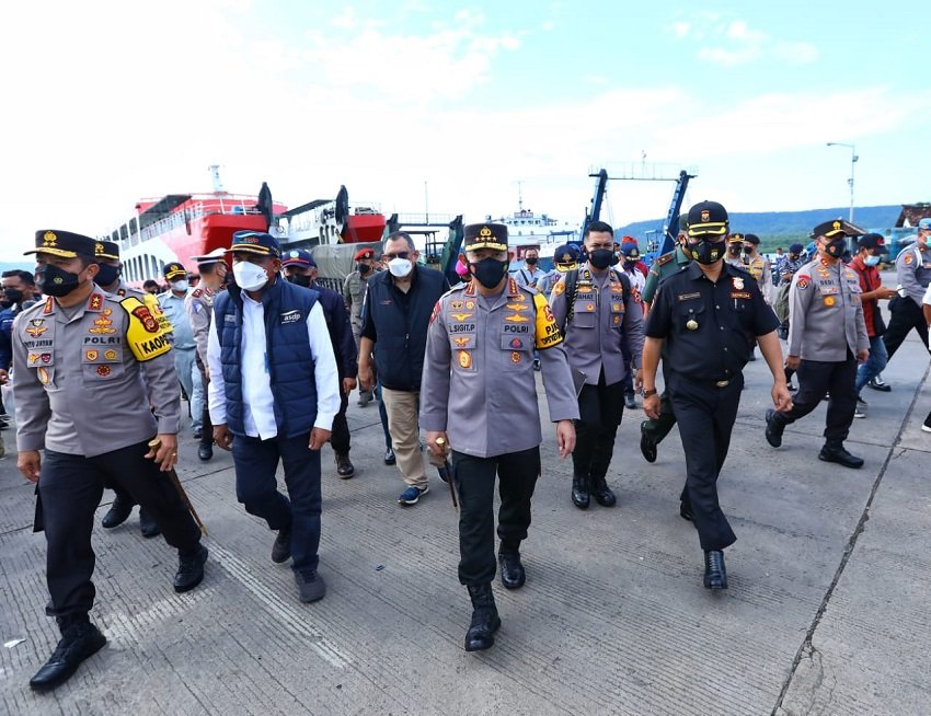 Kapolri Jenderal Listyo Sigit Prabowo meninjau pelaksanaan mudik di Pelabuhan Gilimanuk, Bali, Kamis (28/04/2022). Dalam peninjauannya, Kapolri menyebut arus mudik di Pelabuhan Gilimanuk lebih banyak yang meninggalkan Pulau Bali menuju Pelabuhan Ketapang, Banyuwangi, Jawa Timur.