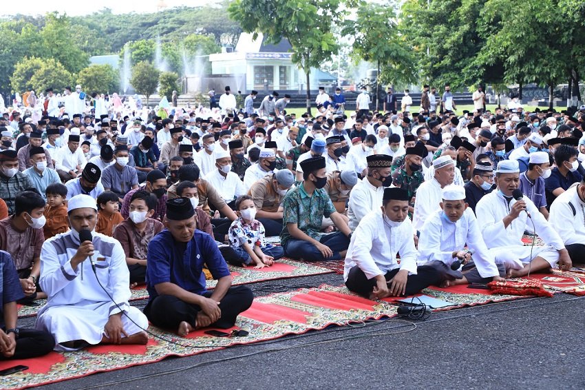 Pelaksanaan sholat Idul Fitri kali ini, digelar di lapangan terbuka untuk dapat menampung kapasitas jamaah Prajurit dan PNS Kodam I/BB serta warga sekitar.