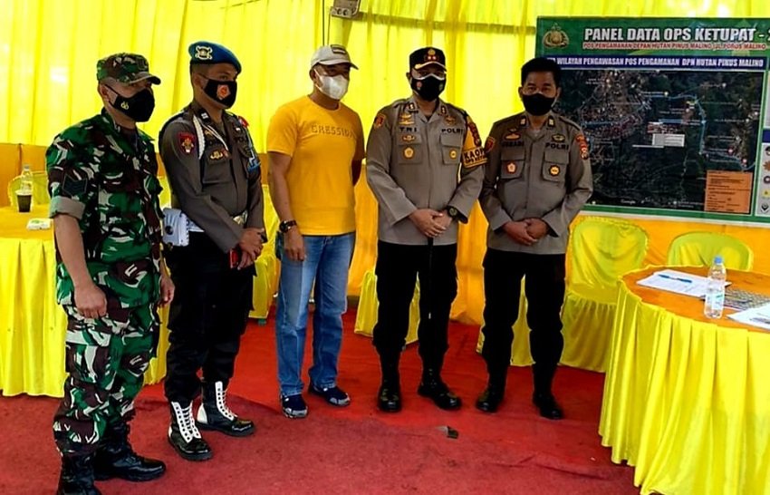 Kapolres Gowa AKBP Tri Goffarudin P, SIK, MH melakukan kontrol ke Pos Pelayanan Lebaran 2022 di Malino, Kecamatan Tinggimoncong, Kabupaten Gowa, Kamis (05/05/2022).
