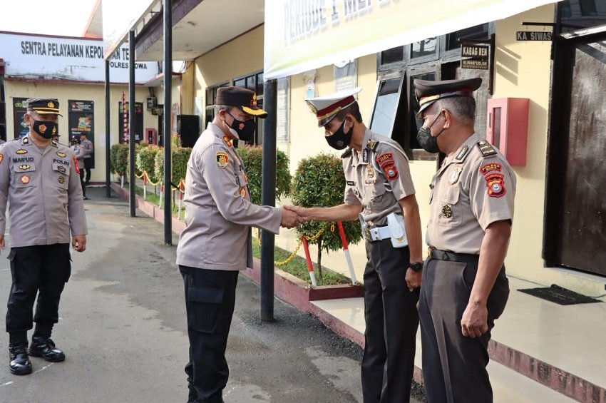 Usai upacara dilanjutkan pemberian ucapan selamat kepada personel yang naik pangkat dipimpin Kapolres Gowa diikuti Wakapolres, PJU dan seluruh personel Polres Gowa. (*)