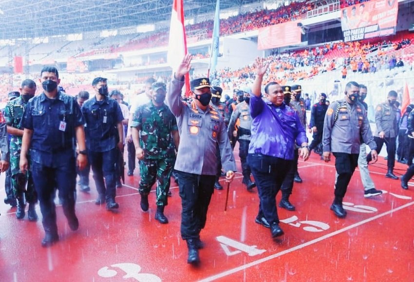 Dihadapan puluhan ribu pasang mata, Sigit pun menyampaikan apresiasinya kepada elemen buruh yang telah berpartisipasi langsung dan aktif membantu Pemerintah Indonesia dalam penanganan dan pengendalian pandemi Covid-19.
