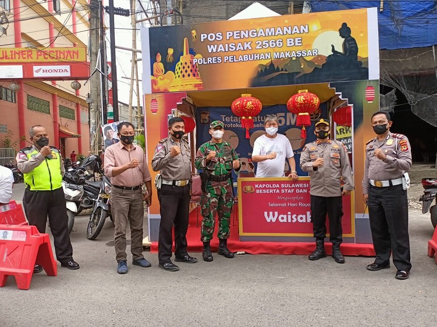Polres Pelabuhan Makassar mengerahkan 106 personel untuk mengamankan Perayaan Waisak tahun 2566 BE. Ini guna mengantisipasi adanya gangguan Kamtibmas bagi masyarakat yang sedang merayakan, Senin (16/05/2022).