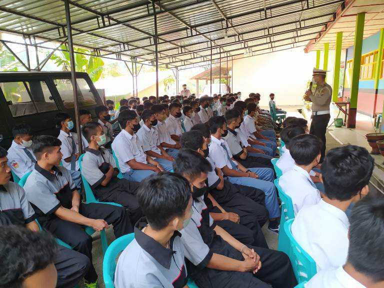 Kasat Lantas Polres Tana Toraja, Iptu Adnan Leppang, Selasa (17/05/2022) menyambangi SMKN 4 melakukan edukasi memutus perilaku penggunaan knalpot bising dan balap liar untuk mewujudkan program Goes To School, Polri Peduli Pelajar.