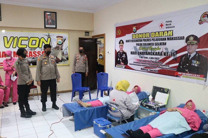 Kapolres Pelabuhan Makassar AKBP Yudi Frianto mengatakan, kegiatan Baksos Donor Darah itu diselenggarakan oleh Polres Pelabuhan bekerja sama dengan PMI Makassar dalam rangka Hari Bhayangkara ke-76 tanggal 1 Juli 2022.