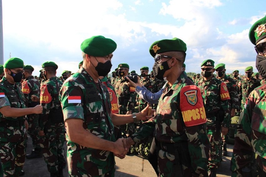 Pangdam XII/Tanjungpura (Tpr), Mayjen TNI Sulaiman Agusto, SIP, MM melepas keberangkatan personel Satgas Batalyon Infanteri (Yonif) 144/Jaya Yudha (JY) untuk kembali ke Home Base. Satgas ini telah selesai melaksanakan tugas operasi pengamanan perbatasan RI - Malaysia. Upacara pelepasan berlangsung di Pelabuhan Dwikora, Pontianak, Selasa (07/06/2022).