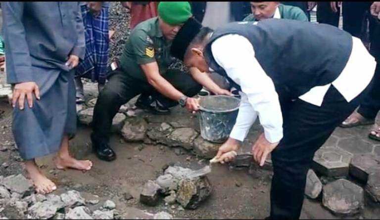 Usai melaksanakan salat subuh berjamaah dan tausyiah, Pangdam juga melakukan peletakan batu pertama pembangunan Rumah Tahfidz di Pelataran Masjid Jami Nailul Ma'ram.