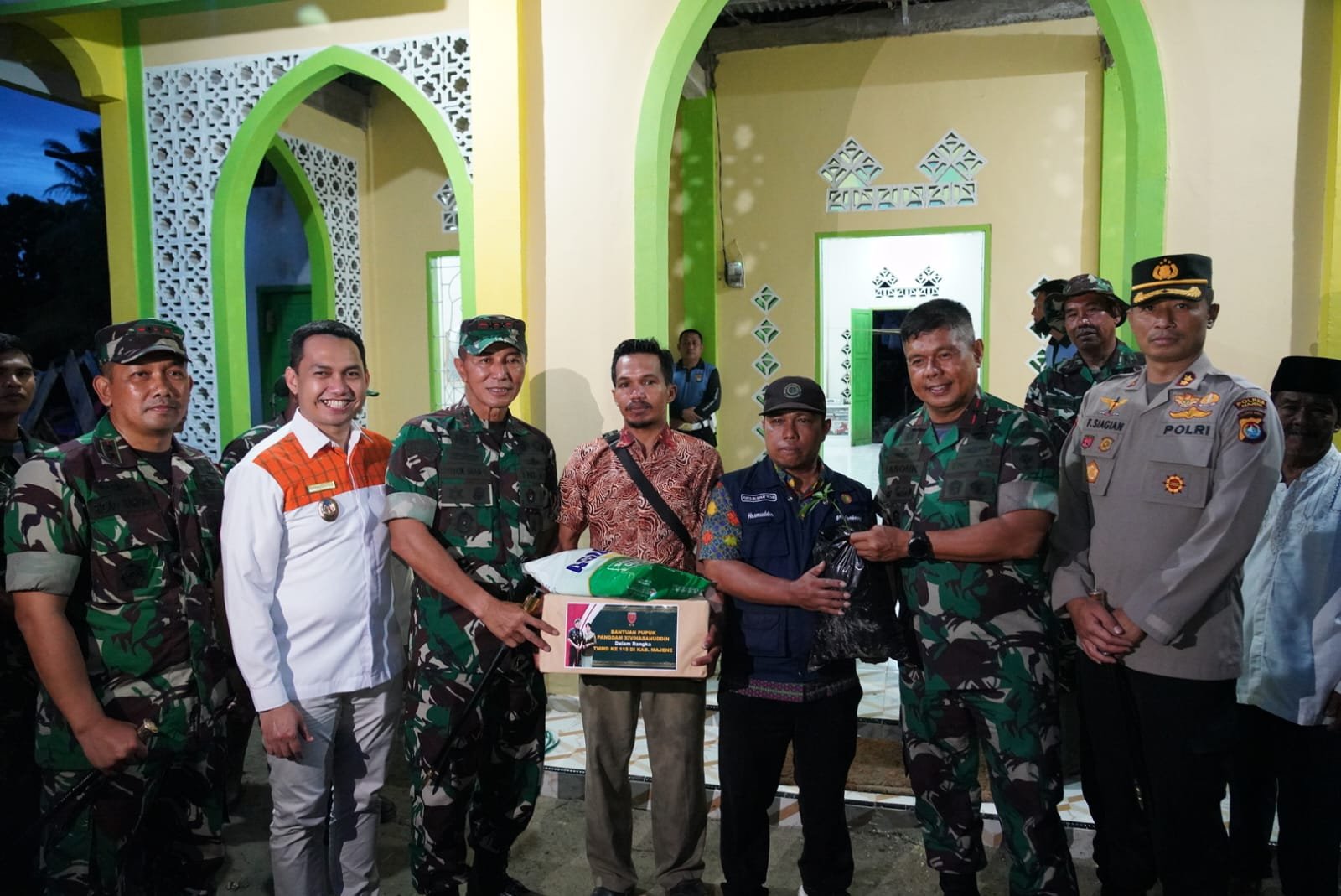 Kembali Pangdam XIV memberikan bantuan berupa 4 rol karpet masjid kepada Imam masjid Al Ikhlas untuk melengkapi perlengkapan ibadah. Kegiatan Peninjauan Lokasi TMMD kea115 diakhiri dengan melaksanakan sholat Magrib bersama di Masjid Al Ikhlas karya dari TMMD ke-115.
